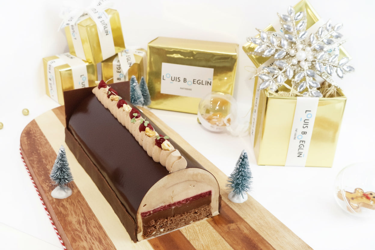 Dreaming of chocolate? This Bûche de Noël features layers of chocolate praliné crunch, raspberry compote, silky chocolate mousse, and rich ganache, paired with a light chocolate sponge and finished with a glossy chocolate icing. A festive indulgence that’s as beautiful as it is delicious!